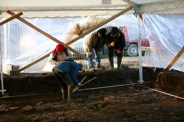Si è colta l’occasione per cominciare anche lo scavo in profondità e il risultato più evidente è che stanno riemergendo i muri dell’edificio. Come si può notare, si conservano solo in parte in quanto, al momento dell’abbandono dell’area, sono stati smontati per recuperare il materiale edilizio, secondo una pratica che era comunissima nell’antichità e nel Medioevo ma che è ormai lontanissima dal nostro modo di vivere. Gli archeologi si devono quindi accontentare di quello che non solo il tempo ma anche gli stessi antichi hanno deciso di lasciarci.