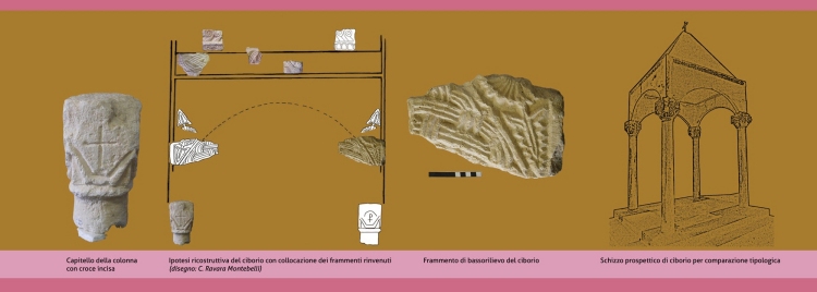 Ipotesi ricostruttiva di Cristina Ravara Montebelli del ciborio della chiesa